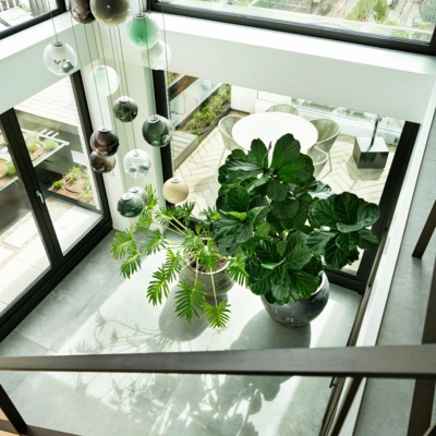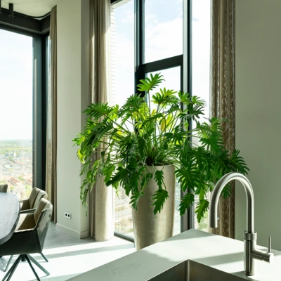 In deze woning hebben we daar slim op ingespeeld. De beplanting is afgestemd op het licht, de ruimte en het dagelijks gebruik. Niet zomaar wat potten in de hoek, maar een doordacht ontwerp dat leeft. En dat laat leven.