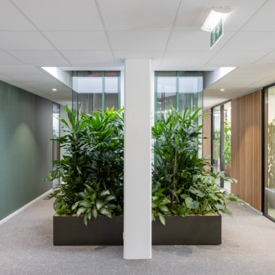 Voor dit project mochten wij de beplanting realiseren als onderdeel van een prachtig totaalconcept waarin meerdere partijen samenwerkten aan een inspirerende en gezonde werkomgeving. Onze bijdrage? Een interieurbeplantingsplan dat het ontwerp versterkt en de visie van Grodan voelbaar maakt. Met tuinkamers vol levend groen, sfeermakers in het werkcafé en natuurlijke accenten op de werkplekken. Alles afgestemd op de ritmes van de ruimte én de mensen die er werken. Duurzaam gekozen, zorgvuldig uitgevoerd. Want groen is niet de aankleding, maar de basis.
